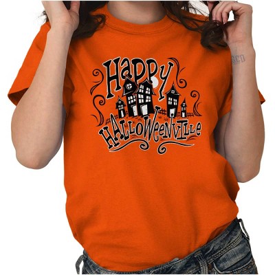 Happy Halloween Ville Haunted Houses Womens Graphic T Shirt Tees Brisco Brands