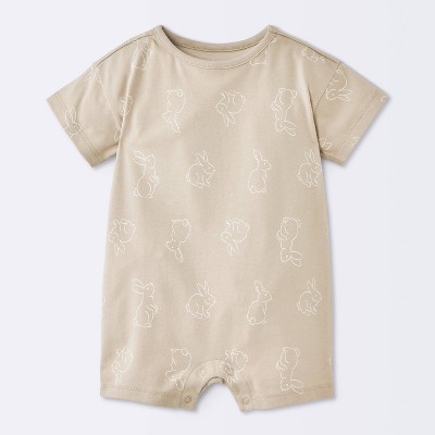 Baby Boys' Bunny Graphic Modal French Terry Long Sleeve Bubble Romper - Cloud Island™ Cream