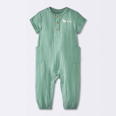 Baby Boys' Embroidered Ducks Graphic Textured Pocket Romper - Cloud Island™ Green