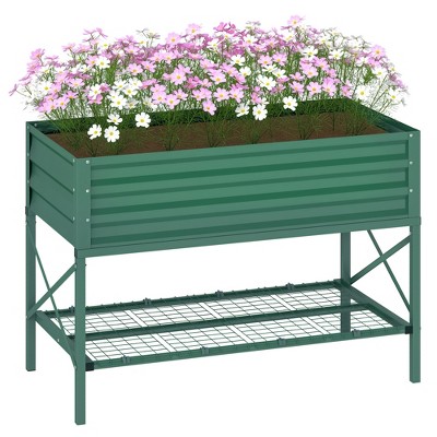 Outsunny Raised Garden Bed with Cover and Storage Shelf, Rectangular Metal Elevated Planter Box with Legs and Bed Liner