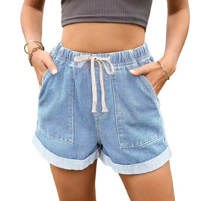 Women's Casual High-Waisted Cuffed Pocket Shorts