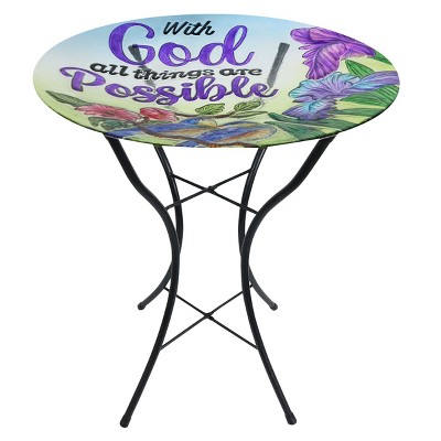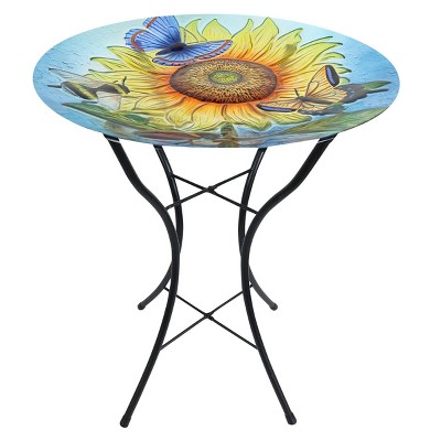Teamson Home 17.8" Fusion Glass Birdbath with Metal Stand, Multi