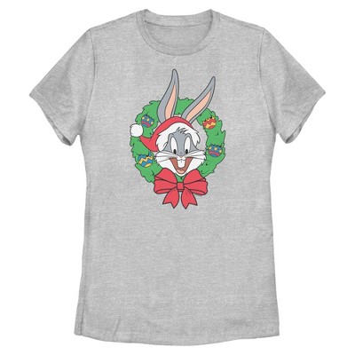 Womens Looney Tunes Happy Bugs Christmas Wreath T Shirt