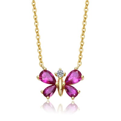 Bella Silver Sterling Silver, Double-Sided, Butterfly Necklace - Gold Plated - Gold - 16+2 Inch