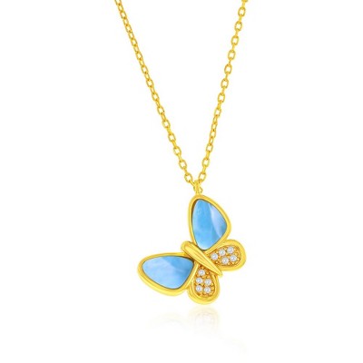 Sterling Silver and Genuine Crystal Butterfly on Flower Pendant Necklace