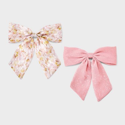 Textured Satin Bow Barrette 2pc Set - A New Day™ Pink