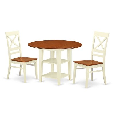 HomeStock 3-Pc Linen White Finish Solid Wood Top With Dropleaf Dining Table Set