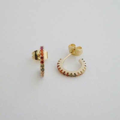 Rainbow Crystal Huggie Hoops in Gold, Rose Gold, Silver - Honeycat
