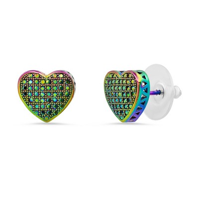 EVRY JEWELS WATERPROOF Gold or Silver Plated Stainless Steel Crystal Heart Stud Earrings