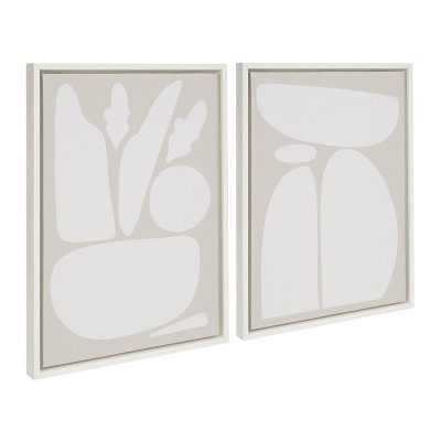 Kate and Laurel Sylvie Zen Botanical Rock Neutral Framed Canvas Set by The Creative Bunch Studio