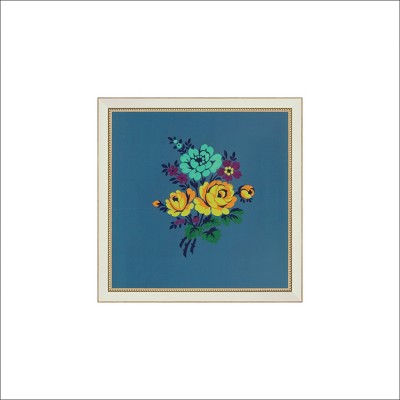 Petal Lane 8"x8" Polychrome Floral Group Brass Beaded Framed Wall Art Cream