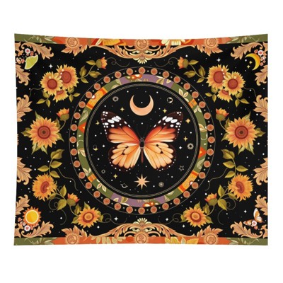 ellow Sun and Moon Tapestry Vintage Indie Boho Tapestry Wall Hanging with Sunflowers Butterfly Moth Wall Tapestries 50x60 iniches