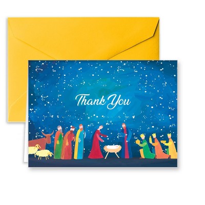 Paper Frenzy Abstract Nativity Christmas Religious Thank You Note Cards and Yellow Envelopes - 25 pack