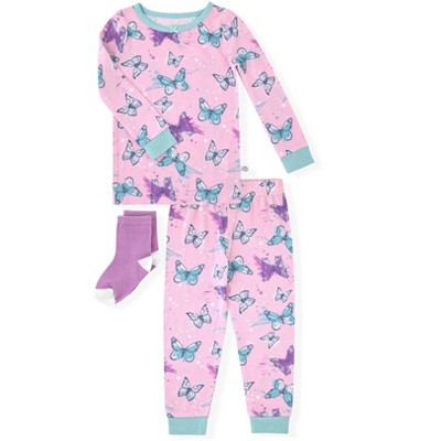 Sleep On It Infant & Toddler Girls 2-Piece Super Soft Jersey Snug-Fit Pajama Set with Matching Socks - for Toddler Pajamas to Kids Pajama Sets