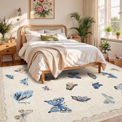9x12FT Washable Area Rug Modern Butterfly Low Pile Non Slip for Living Room Bedroom Dining, Khaki