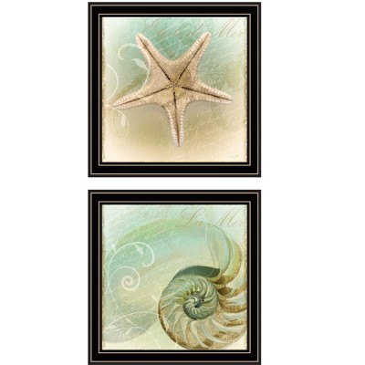 The Sea I & Sea II 2-Piece Vignette by Sophie 6, Ready to Hang Framed Print, Black Frame