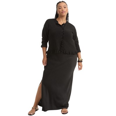 June + Vie by Roaman's Ruffle Hem Buttoned Sweater