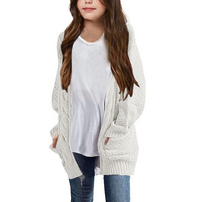 BLUEMING Girls' Oversized Chunky Knit Cardigan Jacket Front Button Thick Sweater with Snug Comfort