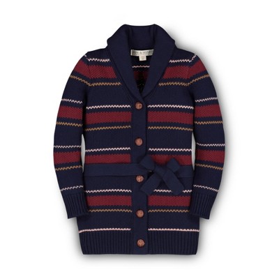 Hope & Henry Girls' Shawl Collar Cardigan with Waist Tie (Navy and Berry Multi Stripe, XX-Small)