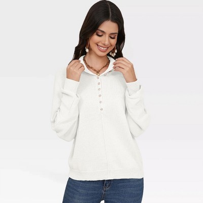 Women's Long Sleeve Mock Turtleneck Button Pullover Sweater - Universal Thread™