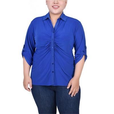 NY Collection Womens Printed Button Up Shirt