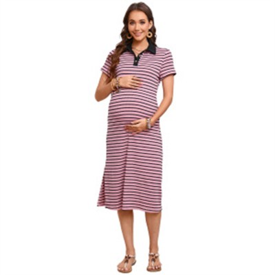 Womens Maternity Dress Swiss Dot V Neck Short Sleeve Button Down Summer Casual Baby Shower Mini Dresses