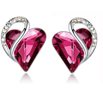 Leafael Infinity Love Heart Stud Earrings with Birthstone Crystal Women's Gifts, Silver-tone