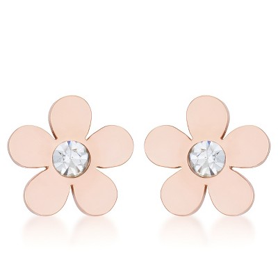 Slickblue Rose Gold Daisy Flower Stud Earrings for Women, 0.3ct CZ, Stainless Steel, Classic & Elegant Design
