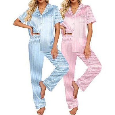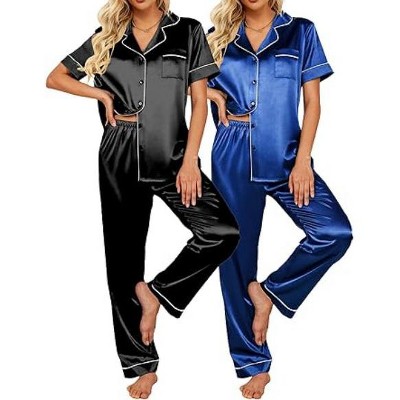 SHESHOW Womens Silky Pajamas for Women Button Down 2 Piece Satin Pjs Satin Pajamas for Womens
