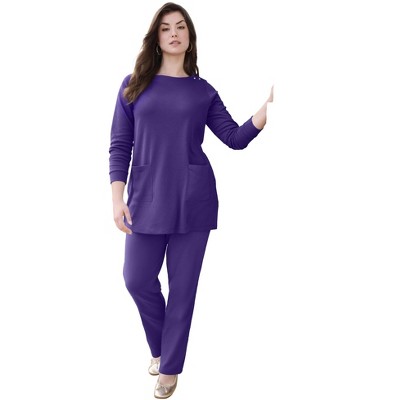 Roaman's Snap Button Boatneck Soft Knit Tunic