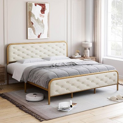 - beige tufted bed
