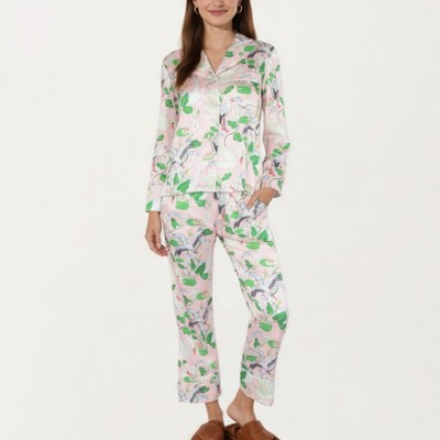 Anna-Kaci Lounge Women's 2-Piece Set Long Sleeve Button Front Pajama Set with Crane Print and Soft Silky Fabric for Relaxed Comfort