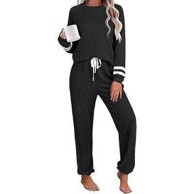 Ekouaer Lounge Sets for Women Ribbed Knit Outfits Pajamas Sets 2 Piece Long Sleeve Sweatsuits with Pockets
