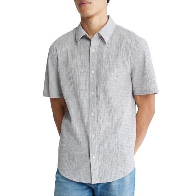 Calvin Klein Mens Crinkle Check Regular Fit Button Up Shirt