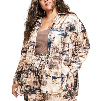 Nina Parker Womens Velvet Oversized Button Up Shirt