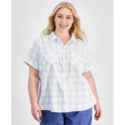 Tommy Hilfiger Womens Plaid Button Up Shirt