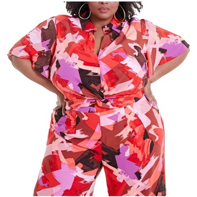 Nina Parker Womens Exploded Geo Swirl Button Up Shirt