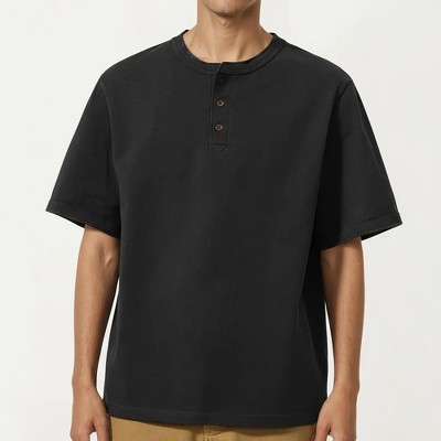 Anna-Kaci Men's Short Sleeve Henley T-Shirt with Button Placket
