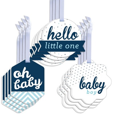 Big Dot of Happiness Hello Little One - Blue and Silver - Assorted Hanging Boy Baby Shower Favor Tags - Gift Tag Toppers - Set of 12