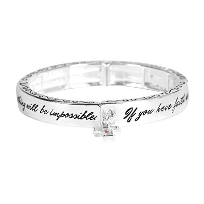Dicksons Faith The Size of a Mustard Seed Cross Charm Engraved Verse Women's One Size Silver Plated Stainless Steel Everyday Four-Tile Stretch