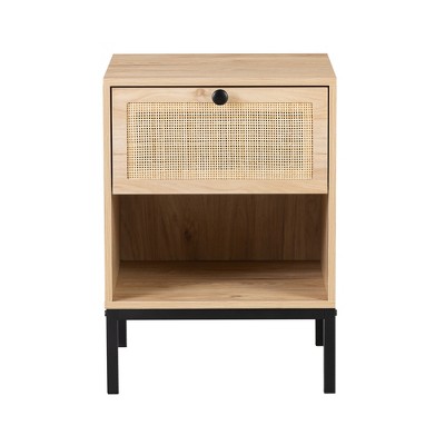 Rattan Nightstand ¨C Boho Accent Table with Rattan Drawers & Metal Legs