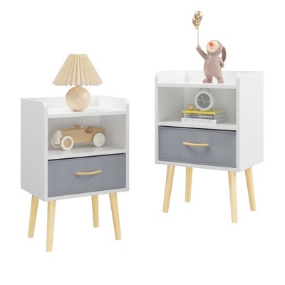 Gulches White 2-Piece Nightstand Set ¨C 2-Tier Storage with Collapsible Fabric Drawers