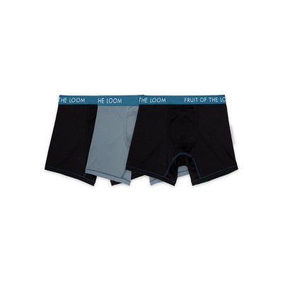 Fruit of the Loom Men’s Getaway Boxer Briefs, 3 Pack Black & Grey – Ventilated Mesh Fly, No Ride-Up Legs, Cooling Gusset, Soft Seams, Stretch Fabric