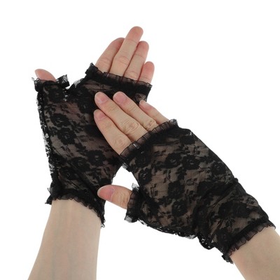 Unique Bargains Halloween Christmas Women's Flowers Lace Sunblock Fingerless Gloves Black 1 Pair