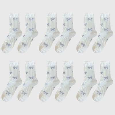 Anna-Kaci Women's 6-Pair Bow Pattern Crew Socks with Fuzzy Ruffled Cuff