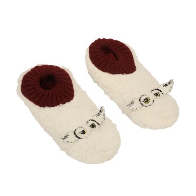 Harry Potter Hedwig Women's Slipper Socks, Sherpa Lined Cozy Socks with Non-Slip Sole, 3D Felt Ears & Embroidered Details, 100% Polyester, Machine