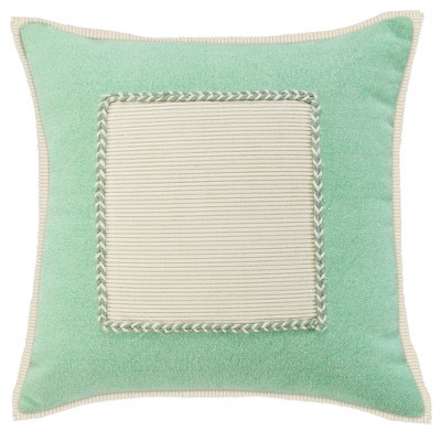 Edie@Home 20"x20" Rattan Geometric Square Throw Pillow Green/Cream: Indoor Decorative Cushion, Woven Polyester-Linen Blend, Hidden Zipper