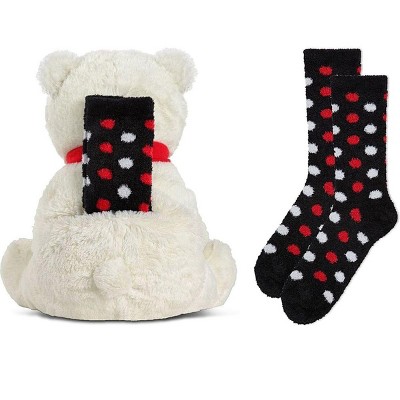 Memoi Cozy Buddies Stuffed Bear with Matching Polka Dot Sock White One Size