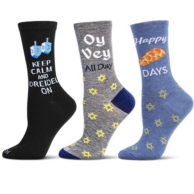 MeMoi 3 Pair Women's Winter-Themed Novelty Crew Socks Black-Red 9-11