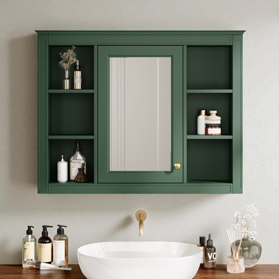 Rbied 35 in. W x 28.70 in. H Rectangular Wood Medicine Cabinet with Mirror, Bathroom Storage Cabinet Wall Cabinet with Open Shelves